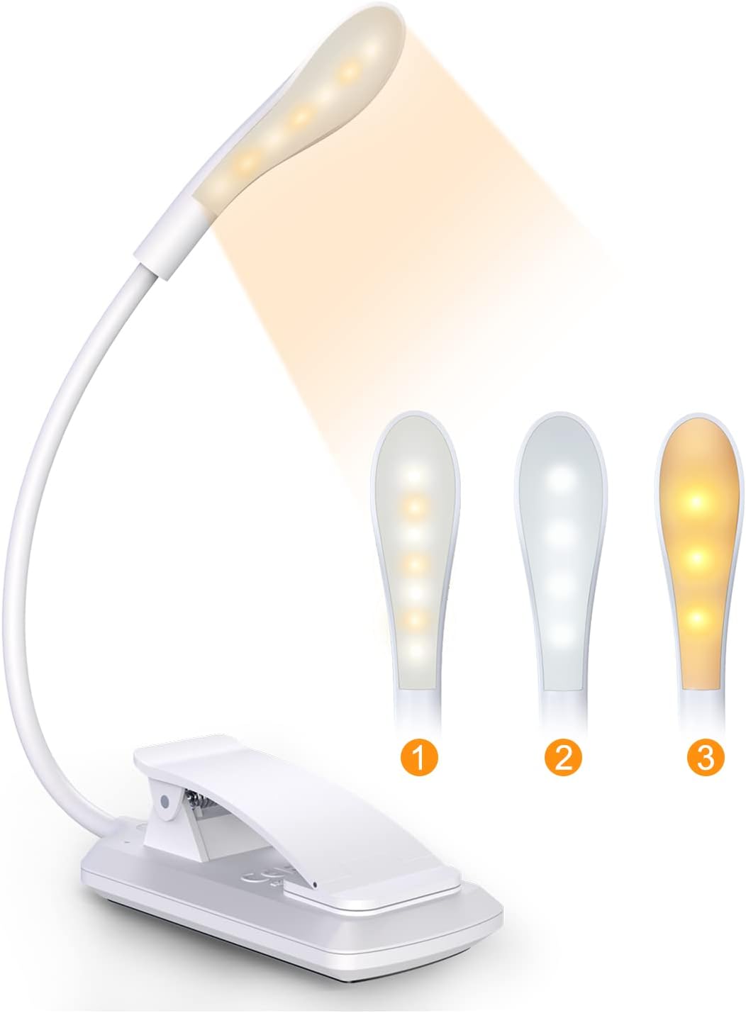 【3 Modos Luz & Brillo Ajustable】Con solo un interruptor con sensor táctil, puede seleccionar fácilmente 3 modos de brillo diferentes: blanco cálido (3 LED cálidos encendidos), blanco frío (4 LED blancos encendidos) y color mixto (los 7 LED encendidos), que se adapta a diferentes modos de lectura.