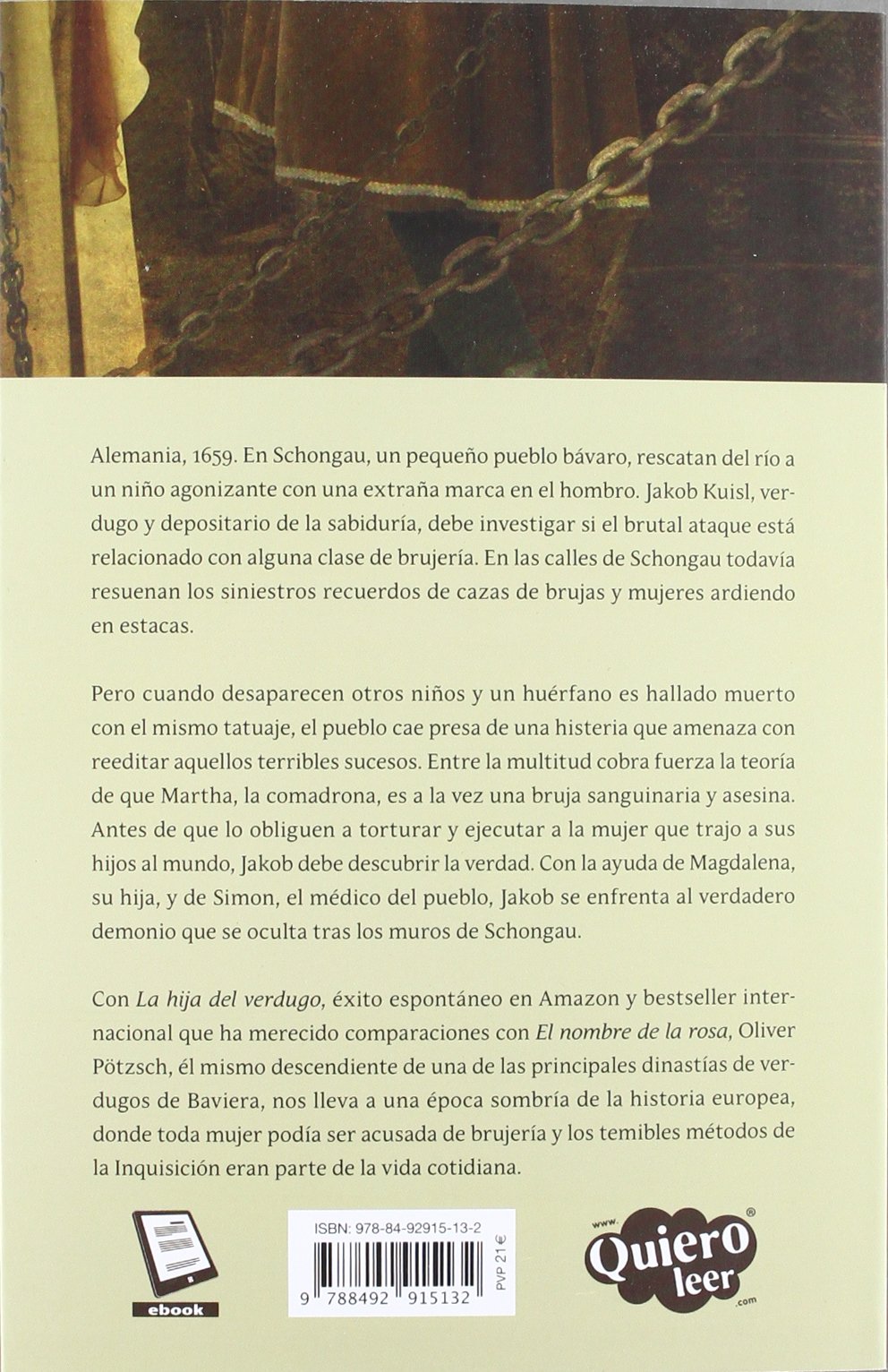 Alemania, 1659. En Schongau, un pequeño pueblo bávaro, rescatan del río a un niño agonizante con una extraña marca en el hombro. Jakob Kuisl, verdugo y depositario de la sabiduría, debe investigar si el brutal ataque está relacionado con alguna clase de brujería. En las calles de Schongau todavía resuenan los siniestros recuerdos de pocas décadas atrás de cazas de brujas y mujeres ardiendo en estacas.
